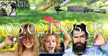 Contact : Pour prendre rendez-vous, appelez-moi au 06.02.12.95.08, par e-mail à l'adresse ciseaux.eternels@gmail.com, par les réseaux sociaux.